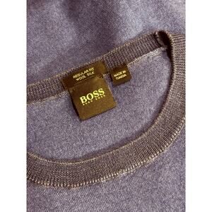 HUGO BOSS regular fit crewneck sweater, size Medium. Made in Tunisia. Crafted from a luxurious wool and silk blend, this piece features a soft, lightweight fabric with a loose body fit and fitted sleeves—a perfect blend of comfort and refinement.