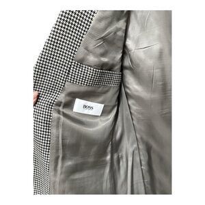 Elevate your style with this classic black and white blazer. Perfect for any formal occasion. HUGO BOSS Vintage Mens Wool Blazer 90s Made In Germany Pure New Wool Jacket Houndstooth Black & White Formal Suit Jacket CORLEONE size 40 L pre-owned good condition