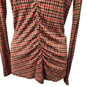 HUGO BOSS Women's Houndstooth Egila Print Top Wool Blend Ruched Seam sz S