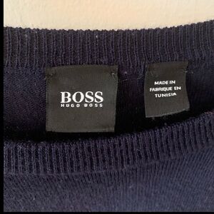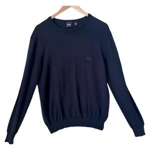 HUGO BOSS Wool Blend Logo Crewneck Pullover Sweater “Balduin” Dark Blue