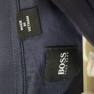HUGO BOSS XL.Color Block Men's Shirt - Navy, Orange, and Brown