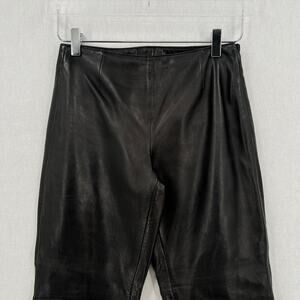 HUGO BUSCATI Vintage Leather Pants Womens 2P Black Straight Leg Mid Rise