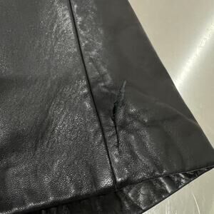 CONDITION: Very good overall, light marks, one small whitish mark on the back of the left calf, one flaw-there is a 2" tear in the leather near the seam at the hem, could be reinforced from the back-see photos for details
