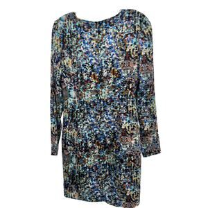 HUGO Hugo Boss Multicolor Abstract Silk Long Sleeve Sheath Dress Women Sz 2