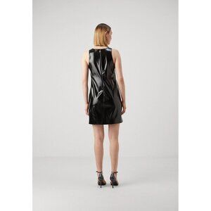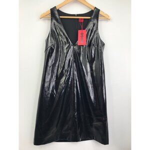 HUGO Kadice Faux Leather Effect A-Line V-Neck Dress Black Size 4 NEW