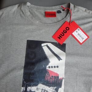 HUGO by Hugo Boss Men’s Grey Dinumo Print Graphic Crew Neck T Shirt XXL NWT