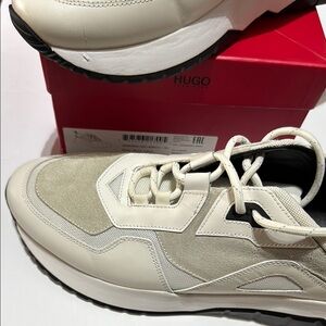 Stylish HUGO sneakers in grey and white. Perfect for casual wear. Suede leather and mesh materials oversized sole premium sneakers
