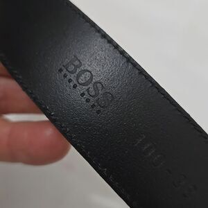 HUGO BOSS Umbe Black Leather Belt 1.5in Wide, 45in Long
