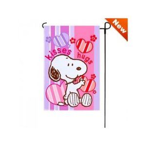 HUGS KISSES Valentines Day Flag Garden 12"x18" SNOOPY PEANUTS GANG Flag10387 NIP