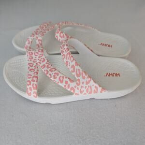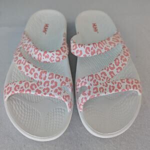 HUHV Women's Recovery Comfort Z Strap Slide - Rose Leopard Size 7