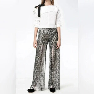 ! HUISHAN ZHANG Pleated Lace Trousers In Black sz 8