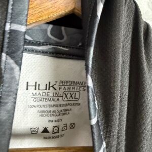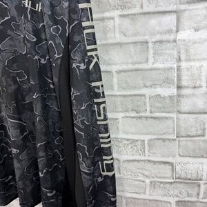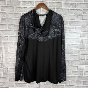 HUK Fishing Black & Gray Camo Lightweight Hooded Pullover Mens 2XL Poly Stretch