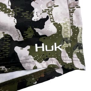 HUK Fishing Low Country Shorts Mens XL Green Camo 6 Inseam Cargo Pocket