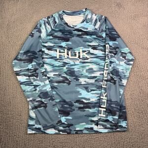 HUK Fishing Shirt Mens M Blue Camo Pursuit Edisto Long Sleeve Performance UPF