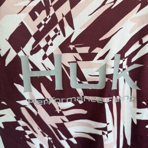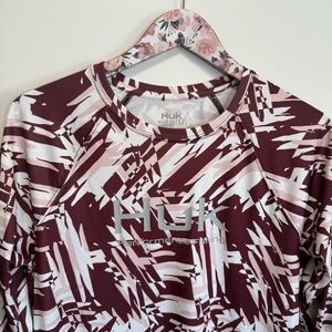 HUK Fishing Women’s Medium Long Sleeve Maroon White Print Top Tee M