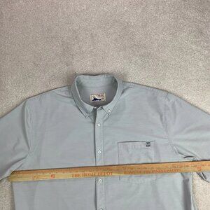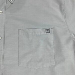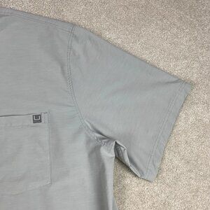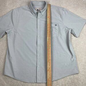 HUK Men's Kona Solid Short Sleeve Fishing Button Down Shirt Pocket Gray XXL 2XL