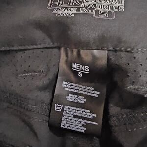 HUK Next Level Shorts in Black. Size S / Small. Features adjustable waistband, zip fly, belt loops, side slant pockets, side cargo pocket, and back zipper pockets. 55% Cotton, 35% Polyester, 10% Spandex. Excellent pre-owned condition, no flaws.