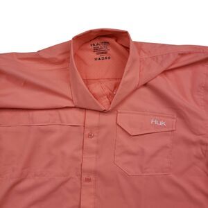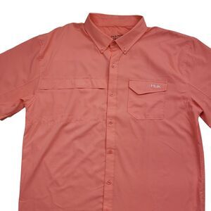 HUK Performance Fishing Tide Point Shirt Mens XL Orange Short Sleeve Button Down Outdoor Stretch