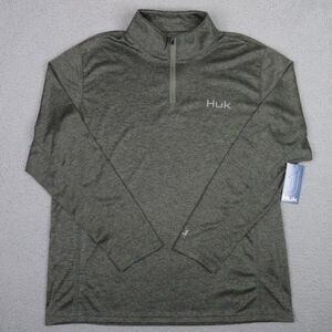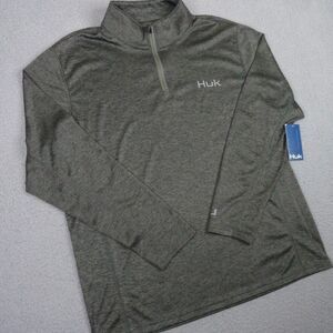 HUK Shirt Mens Large Heather Moss Green Coldfront 1/4 Zip Fishing Pullover NWT