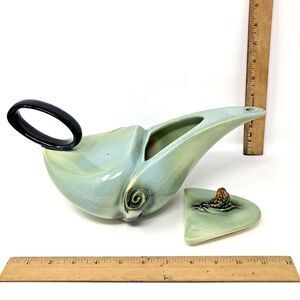 HULL Art Deco Pottery Teapot 1950's Parchment & Pine Sage Green VTG Mid Century