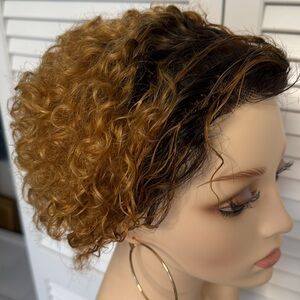 Beautiful and Real, perfect curls, black under and Carmel/honey, looks like lace was cut but I’m not sure….theres still enough to use. Of course since it’s real, it can be dyed or straightened if you wish. Examine pics…this is so cute (imo) and easy to just pull your own hair thru to blend them together to add volume to your own hair. Well….you know what to do🤣. If you like this, please check out my other adorable Pixie cut wigs and “bundle and save”. I ship every day