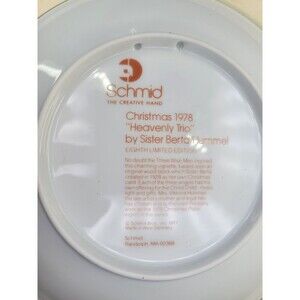 Vintage, 1978 Christmas Plate created by Sister Berta Hummel, "Heavenly Trio" Schmid. Comes in original box. Plate measures 7.25 in diameter and weighs 9 oz.