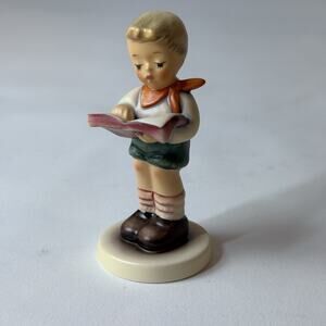 This is a collectible Hummel figurine depicting a young boy holding a book, titled "Honor Student". It comes with an original certificate and is made of porcelain. The figurine is part of the Hummel collection and was manufactured in the late 20th century, specifically in the 1970s. The style is reminiscent of the 1950s, and it is an original piece, not a reproduction. The figurine is suitable for display on all occasions and is a perfect gift for collectors of decorative sculptures and figurines.