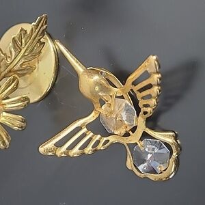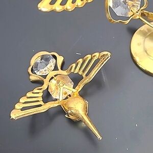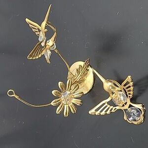 HUMMINGBIRD AUSTRIAN CRYSTAL MASCOT LITE CATCHER WITH FLOWERS 24KT GOLD PLATED