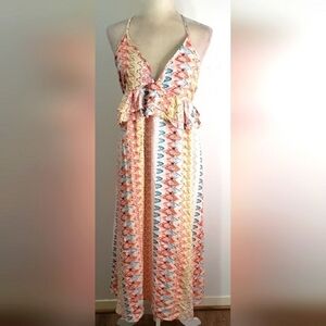 Pretty peplum ruffle midi dress Spaghetti straps elastic waist,