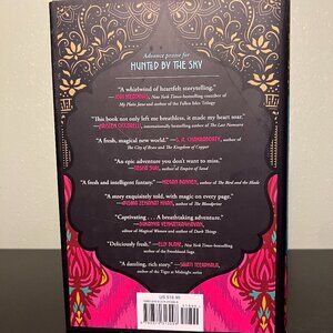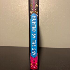 New, unread hardcover copy of YA fantasy novel, Hunted by the Sky, by Tanaz Bhathena. Published by Farrar Straus Giroux, New York 2020. With a dust jacket featuring an embossed title.