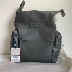 Practical, weatherproof and crafted from highly water-resistant rubberized leather, the Original Top Clip Mini Backpack pays homage to Hunter’s 160 years of all-weather innovation. This best-selling mini style in olive is secured with a parachute clip and zip at the top. The neat and compact body has a depth of 7.5cm, a 7.6L capacity and can fit an 11" tablet.