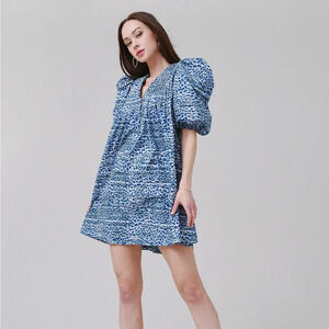 HUNTER BELL Blue Jenkins Dress Puff Sleeve