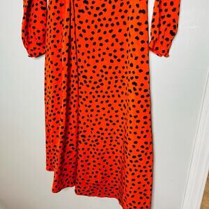 HUNTER BELL Orange Black Animal Print Lawton Polka Dot Ruched Dress Size 0