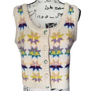 HUNTER BELL Sz Large Maudie Knit Sweater Tank Crochet Star Multicolor Wool Blend