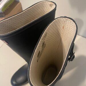 For your consideration is the pair of Authentic Hunter Boot Ltd Original Tall Rain Boots AKA "Wellies" in Matte Black that I'm selling for my daughter. She just has too many pairs and is downsizing. These are crafted using natural rubber from forests independently audited to Forest Stewardship Council® Forest Standards. They are 100% waterproof boots. It is style #W23499 and is a US Size 6M (UK5, EU38). They stand 16" tall. They are in great used condition; some marks on them but that's understandable. These retail for $205.00 on their website.