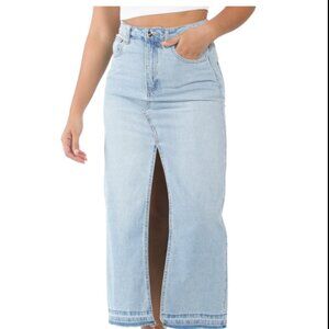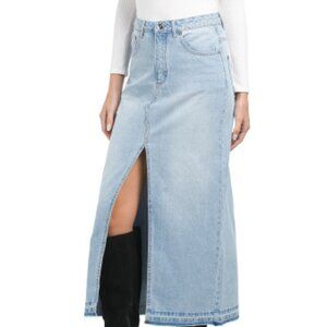 HUNTER & BROWN Raw Hem Denim Midi Skirt XL