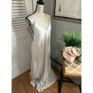 HUNTER BROWN Womens Dress XL Cream Striped Maxi Plunging V Neck Halter Backless