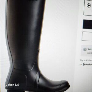 HUNTER Black Matte Tall Boots. NIB. Size: various. No rips/stains/scuffs/peeling/tears. Brand new in original box/packaging. Boots are perfect. Box has very minor damage. Smoke free home. No odors. All offers are welcome. Thank you! Pics are of the 8, I have a 6 in the same condition.