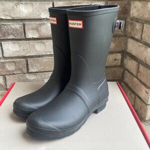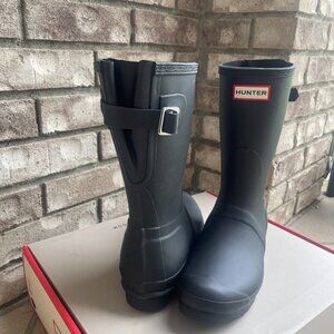 HUNTER ORIGINAL SHORT BACK ADJUSTABLE BOOT 8 Women's Outdoor Rain Black Rubber