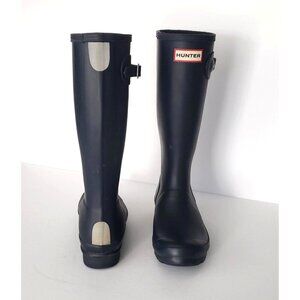HUNTER Original Classic Waterproof Tall Rain Boots Navy Blue with Reflective Safety Patches