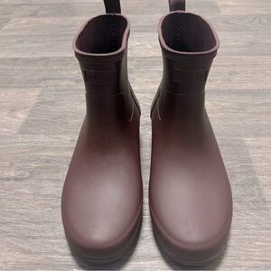 HUNTER Refined Low Heel Ankle Matte Rainboot in Oxblood, size 7US