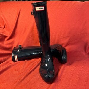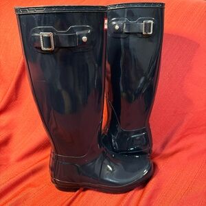 HUNTER Original Wellington Tall Rain Boots, Navy Blue Gloss, Women’s Size 7, EUC