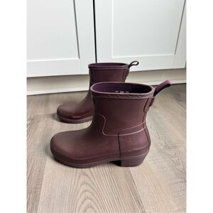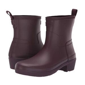 HUNTER Refined Low Heel Ankle Matt Boot Oxblood Size 5 Rainboots