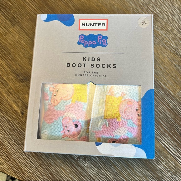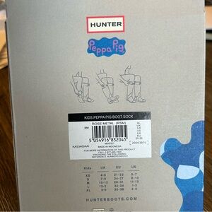 The HUNTER Special Edition Peppa Pig Kids Boot Sock in Rose Metal XL is a unique and colorful sock featuring a Peppa Pig character theme. This XL size sock is designed for unisex kids and comes in a beautiful pink color, perfect for adding a fun touch to their outfit. Ideal for all seasons, this boot sock from the trusted brand Hunter is sure to bring a smile to any child's face.
