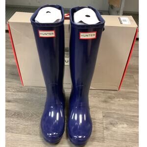HUNTER Sz 7 Melody Blue Original Back Adjustable Gloss Rain Boots Pull On LM1-24