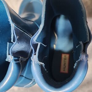 HUNTER TEAL CHUNKY BLOCK HEEL CHELSEA RAIN BOOTS Women's Size 8