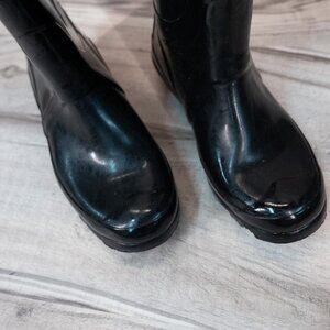 HUNTER Women Field Huntress Black Gloss Rubber Knee High Tall Rain Boots Sz 6