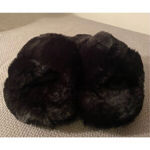 HUNTER BLACK FAUX FUR FLATFORM SLIDES