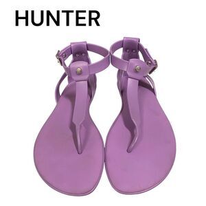 Cute! pair of HUNTER women's purple, t-strap, thong sandals.