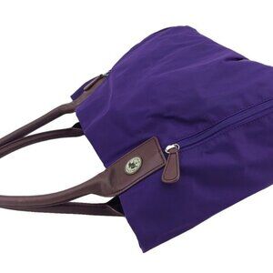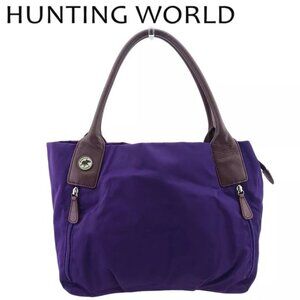 HUNTING WORLD◆HUNTING WORLD◆Tote bag tote shoulder bag◆Women's and men's combination of different materials◆Logo button◆Purple brown silver◆Nylon canvas x leather◆[Used]◆T22151